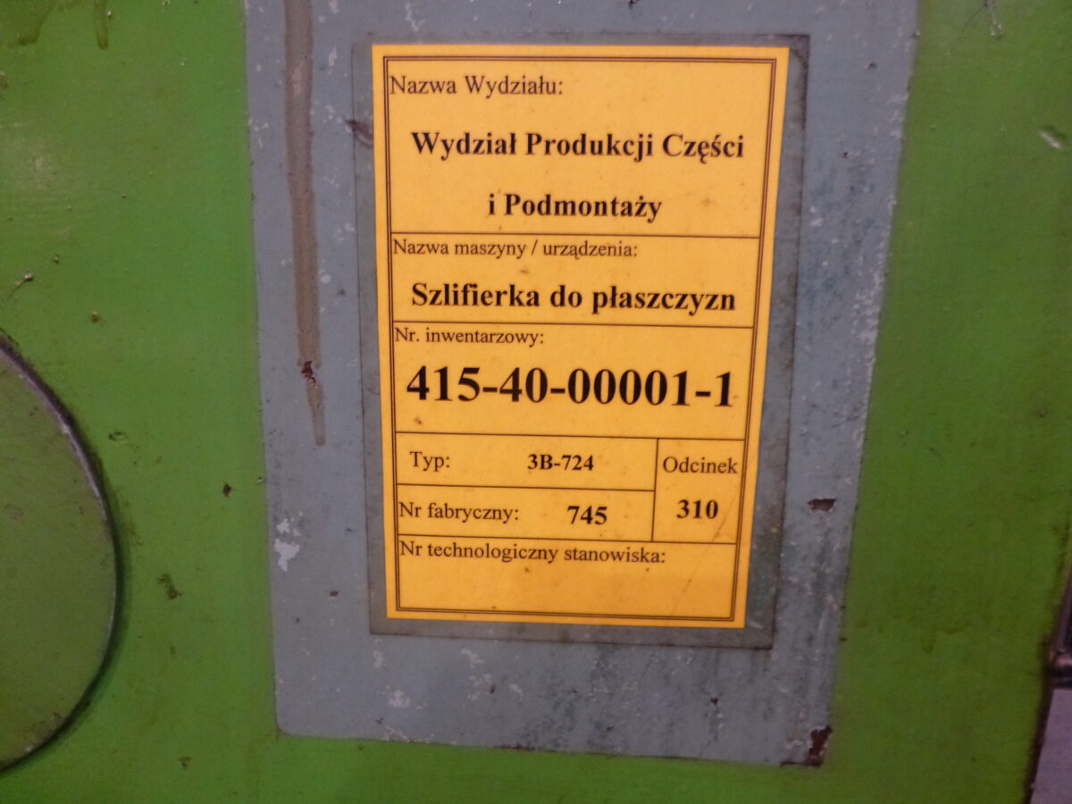 Ogłoszenie o sprzedaży szlifierki do płaszczyzn